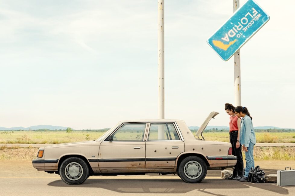 Set just before the turn of the 21st-century, Drive-Away Dolls opens with criminal intrigue before shifting its focus to the two women at the film’s heart. When Jamie (Margaret Qualley) is caught cheating on her long-term cop girlfriend, Sukie (Beanie Feldstein), she decides to join her apprehensive friend, Marian (Geraldine Viswanathan), on a road trip from Philadelphia to Tallahassee. Unaware that some precious cargo is hidden in the boot of their rental car, they find themselves on the run from three criminals (Colman Domingo, C.J Wilson, Joey Slotnick).