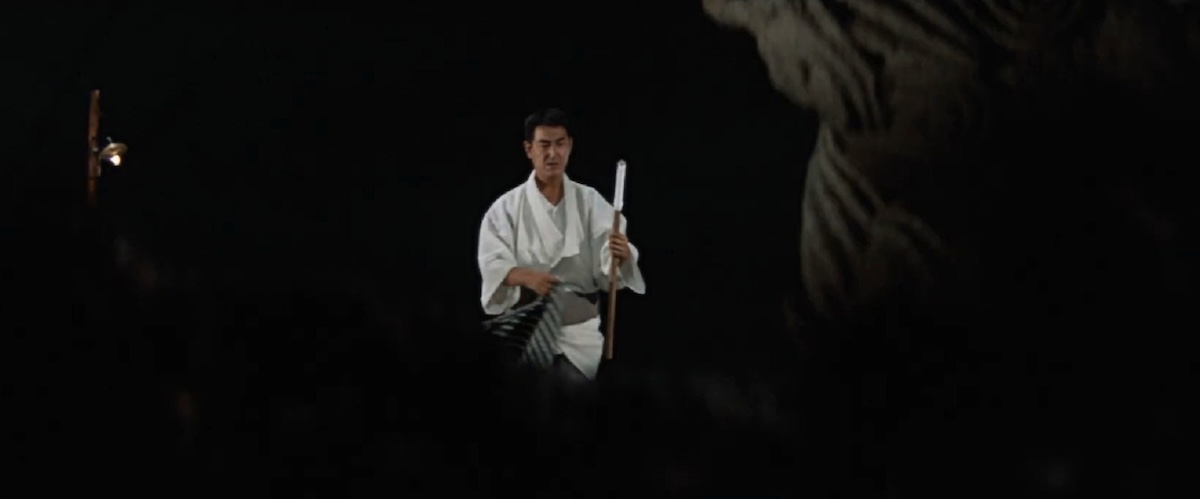 Katō is also adept at using lighting for narrative effect, particularly in the finale. When we reach the inevitable battle between the arrogant Karasawa and the noble Asajiro, the action plays out at night as the set disappears into solid black shadow. Whether this was due to budgetary constraints or artistic choice, it poetically emphasises their isolation and the human scale of the violence.
