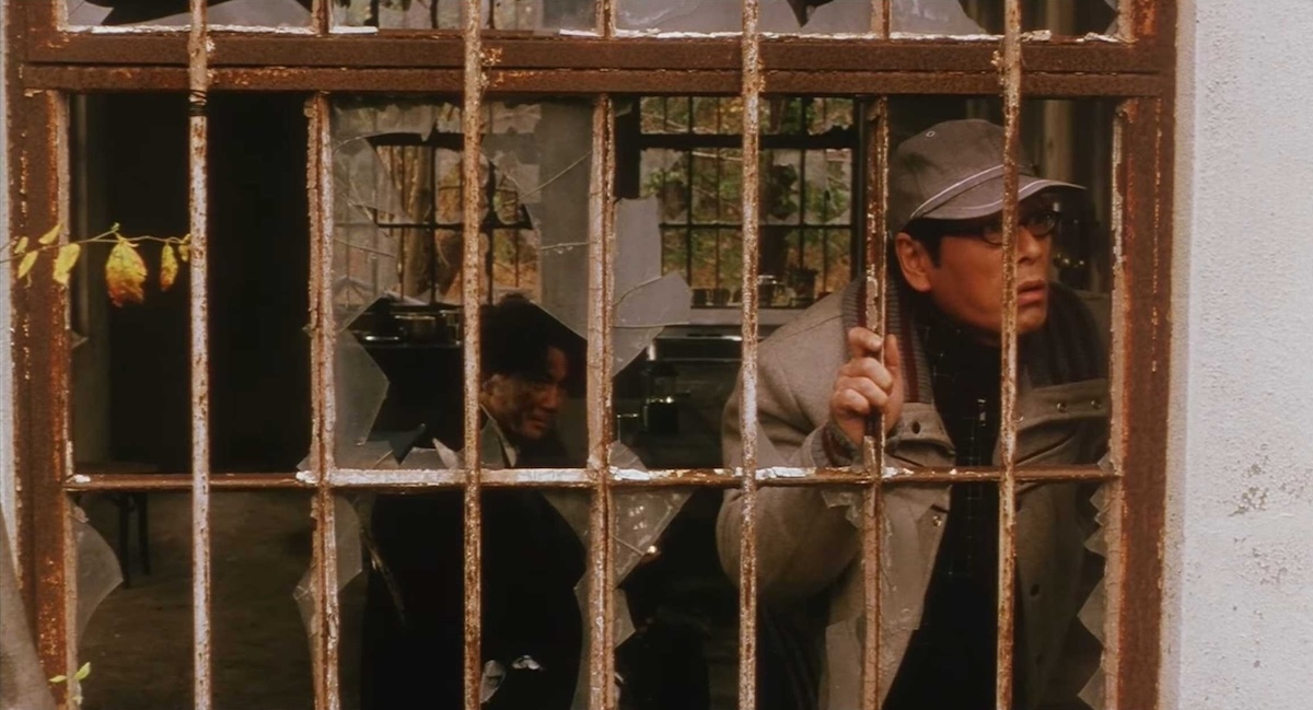A man sleeping on a bench awakes to the sound of his own name: Yabuike (Kôji Yakusho). The bench is in what we presume to be the dilapidated wing of an old police station; his sleep-deprived state is clearly taking its toll when his superior tells him to take some time off. Not soon enough, however. Before the end of his shift, he’s called to a hostage situation and sent in as a negotiator.