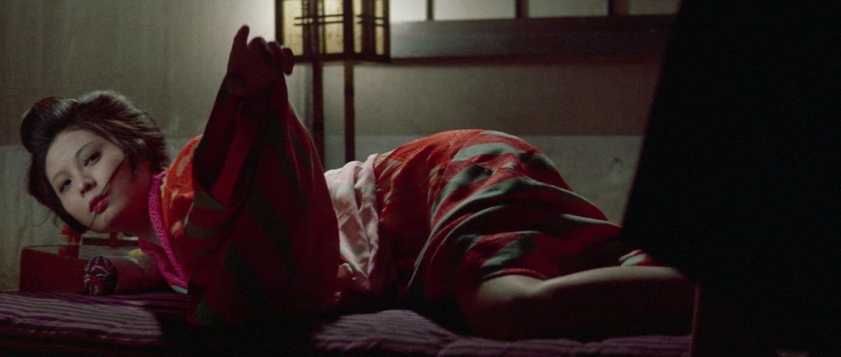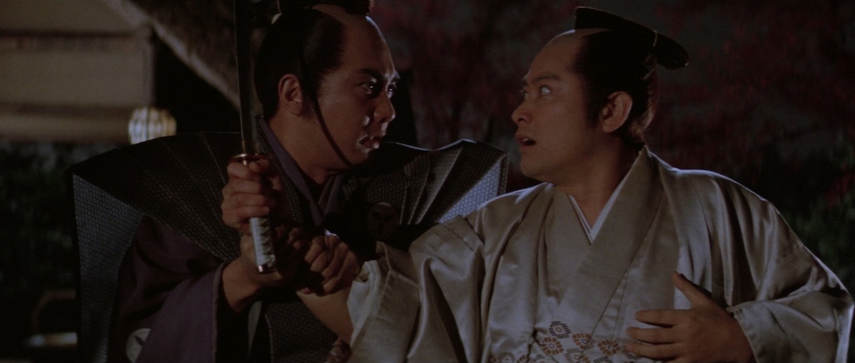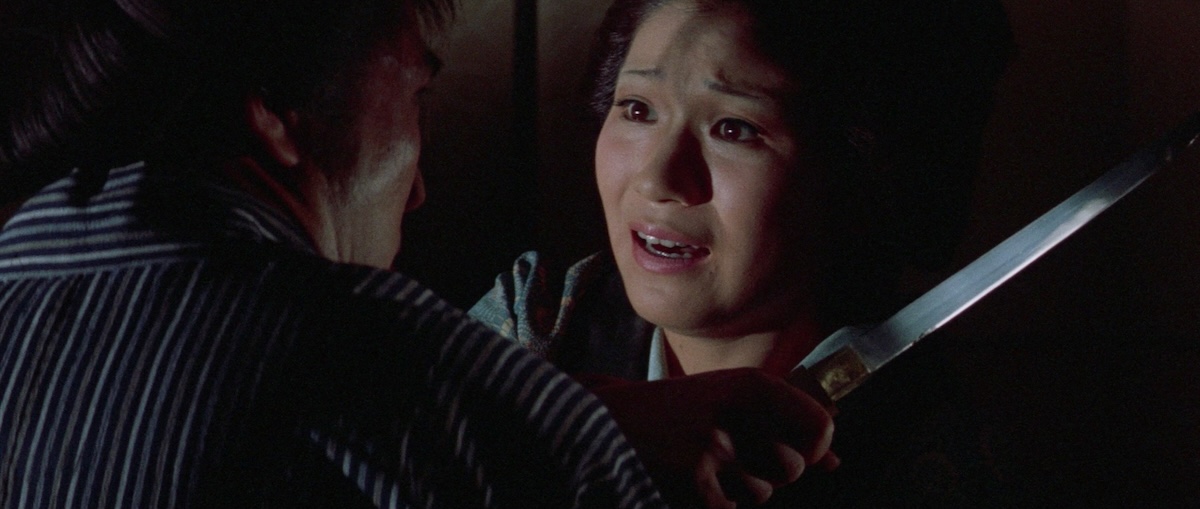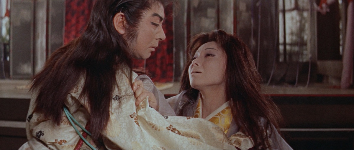 The image quality of this 4K restoration is gorgeous. I mean, just look at the rich colours and silk lustre of the kimono on show. Sadly, there’s some rather obstinate and obtrusive noise on the soundtrack that I feel could have been reduced with some careful digital remixing. The script is strong enough to cut through this, but it does get in the way of engaging with some of the earlier scenes. One eventually acclimatises… I tried imagining it was an acoustic backdrop of heavy rain, which sort of suited the Gothic atmospherics. It’s only a problem during the dialogue and doesn’t detract from the often-grandiose score by Ichirô Saitô that masterfully segues between traditional instrumentation and modern orchestration.