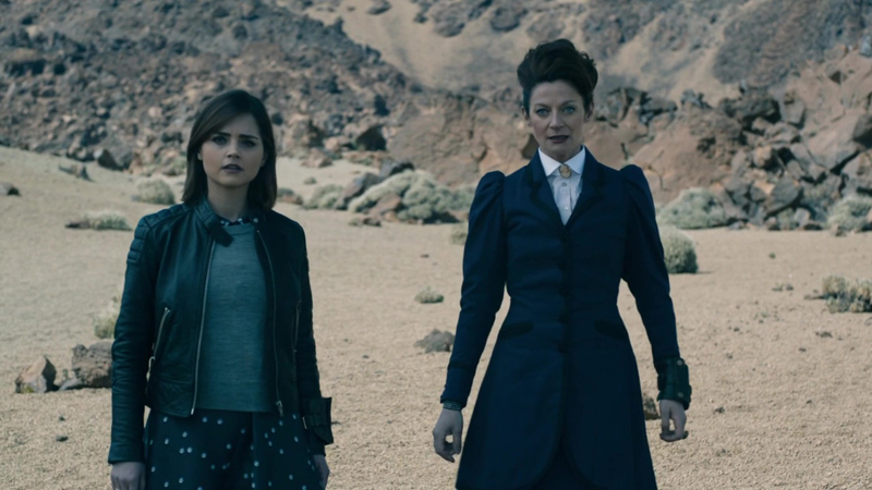 Moffat should take Missy’s advice: stop spinning plates and “cut to the chase”. Michelle Gomez’s performance is once again very bold; a pathological force of nature befitting the Bond vibe to Missy’s meeting with Clara on a Tenerife café terrace. It’s certainly an unusual stand-off and collaboration between “the puppy” and the Doctor’s ruthless enemy, foreshadowing the later tête-à-tête between the repentant Doctor and the resentful Davros.