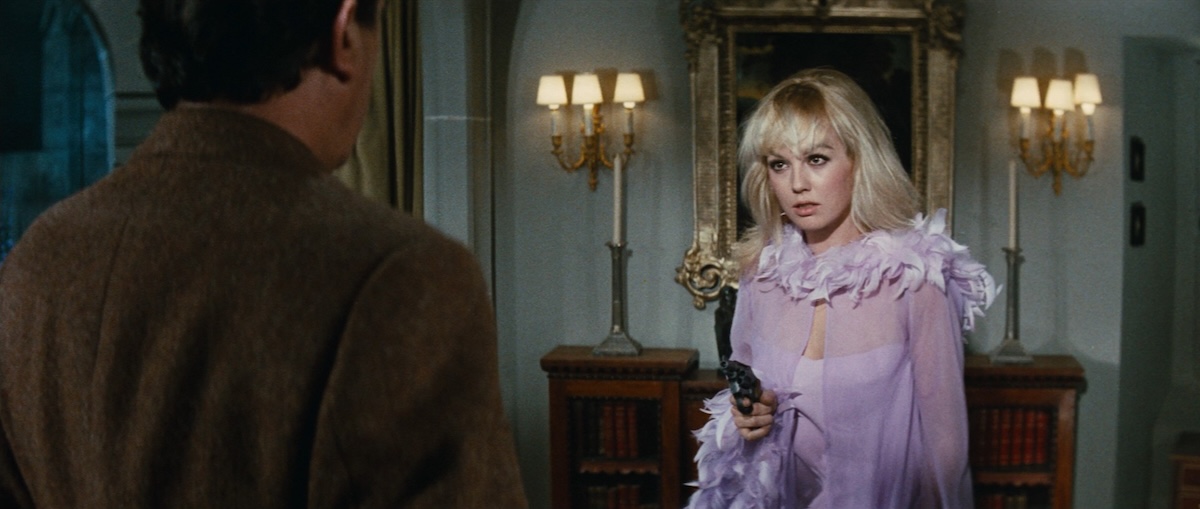 The castle setting lends itself to some nice ‘Old Dark House’ horror tropes that recall classics such as Paul Leni’s The Cat and the Canary (1927) and James Whale’s The Old Dark House (1932). Of course, the fake ghosts and a spooky séance hosted by Lady Dorothy MacRashley (Françoise Christophe) are played for laughs. Although the narrative has its nastier threads, it’s also the most irreverently ridiculous, making no attempt at rational explanations for some key plot points.