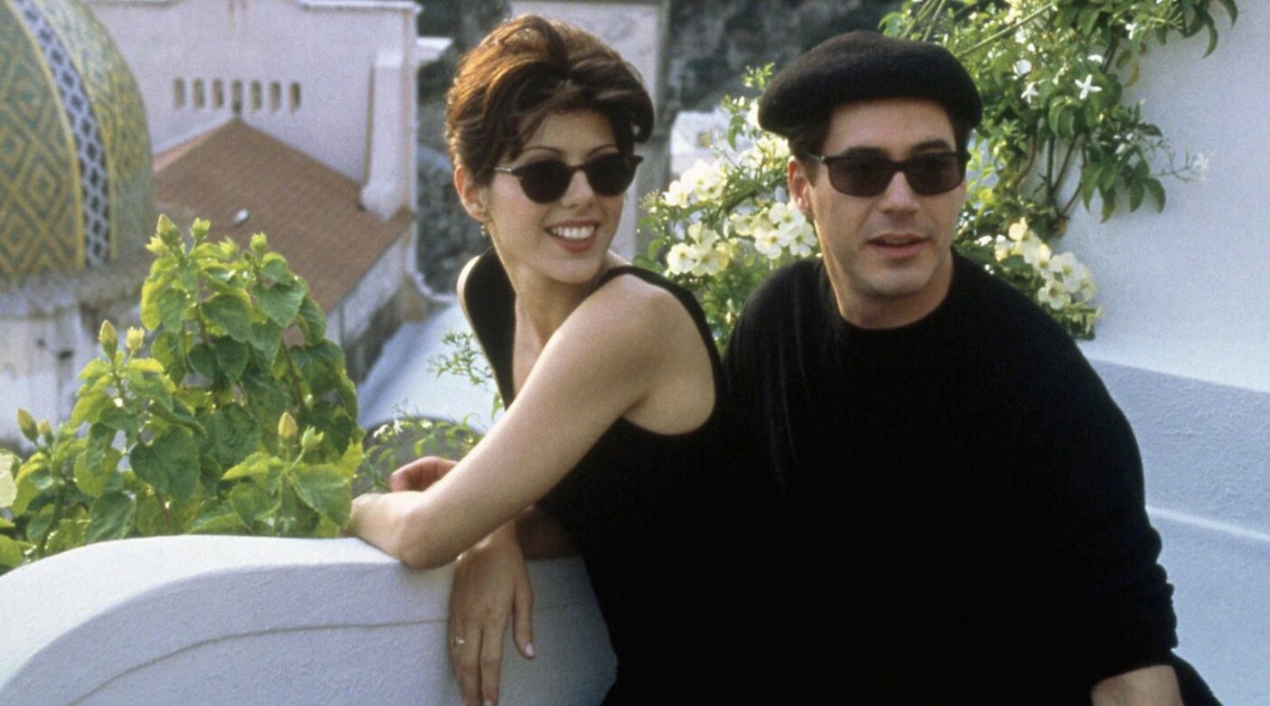 The story itself feels like something out of a fairy tale. Our heroine, Faith (Marisa Tomei), is a poetry teacher and a romantic who still remembers an incident with an Ouija board from her childhood. The board told her she would “say I do” to a man named Damon Bradley—a prediction later confirmed by a carnival fortune teller. Just 10 days before Faith is due to marry a podiatrist, she receives a call from Damon Bradley himself, an old classmate of her fiancé who is currently travelling through Italy. She immediately sets off for the continent, dragging along her reluctant best friend (Bonnie Hunt) in search of her destiny. She ends up meeting not Damon Bradley, but Peter Wright (Robert Downey Jr.), a charismatic and equally impulsive shoe salesman who begins his own journey to prove he’s the man for her.