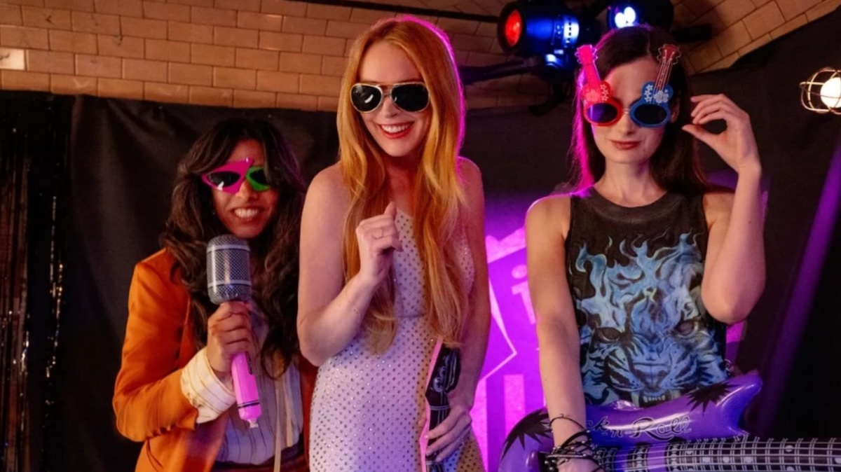 Psychologist Tess (Curtis) is struggling not to get involved in the lives of her pop-star manager daughter Anna (Lohan) and teenage granddaughter Harper (Jula Butters). Their lives change when Harper fights with the British girl at her Los Angeles school, Lily (Sophia Hammons). After being sent to the head teacher’s office, Anna meets Lily’s father, Eric (Manny Jacinto), and the couple immediately hit it off. Before the opening credits end, the couple is engaged and ready to move abroad together, but their daughters are not happy about it.