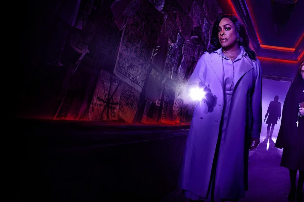 Most of this is accomplished solely through Niecy Nash’s brave and commanding leading performance. She leans into these qualities too obviously — though who could blame an actor for doing so when they’re cast in such an aggressively unsubtle series? — but Nash is captivating all the same. Just like Mankiewicz, Lois staggers drunkenly, points fingers, and swirls the perpetual glass of alcohol in her hands. At its best, Grotesquerie paints its domestic scenes with a woozy, intoxicated feeling, where viewers don’t have to try very hard to imagine Lois’ state: tired, inebriated, sick of the world and everyone in it, yet always willing to poke the bear that manifests in everything and everyone around her. The cinematography and lighting might be consistently ugly, but there is promise in the show’s direction and writing in these moments.