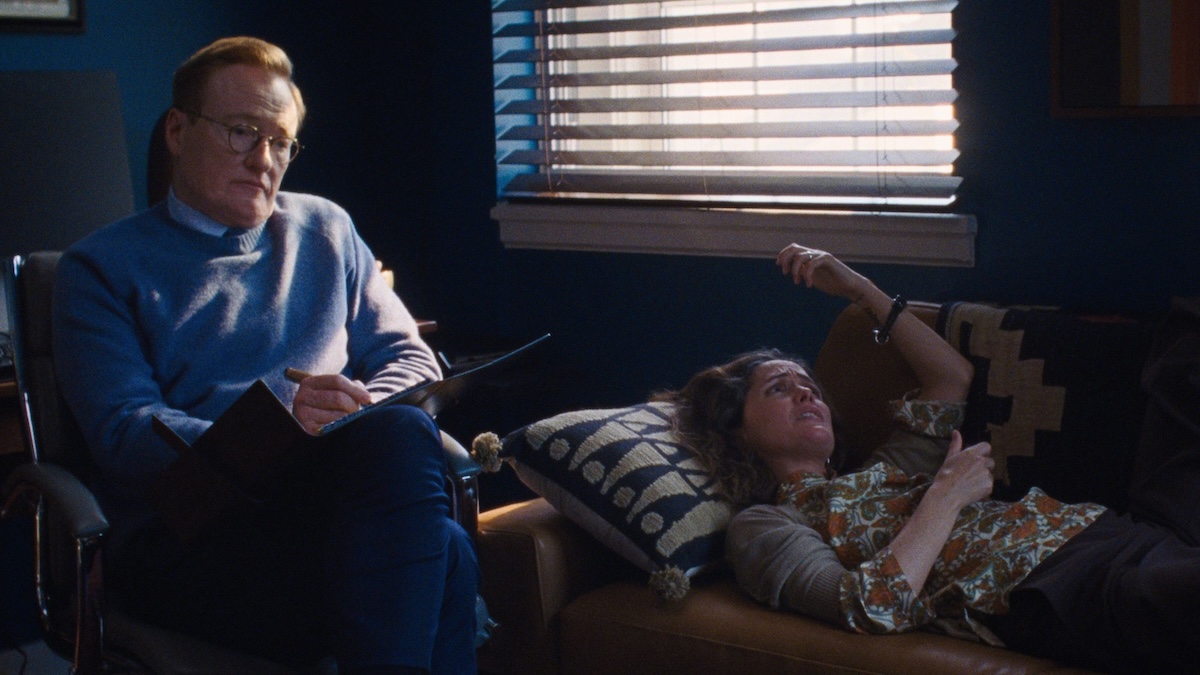 As Linda’s world begins to spiral outwards, the cast of characters surrounding her begins to grow at a steady pace. Many of them offer up some kind of levity; all of them prove to be some kind of thorn in Linda’s side. Linda herself works as a therapist, but gets therapy sessions down the hall from one of her fellow therapists—played by none other than former chat show host Conan O’Brien, in a surprisingly convincing turn. O’Brien suppresses his amicable charm and delivers a quietly hostile and apathetic performance that allows him to bring a darker breed of humour to the fore, as he carelessly wings his way through giving Linda support.