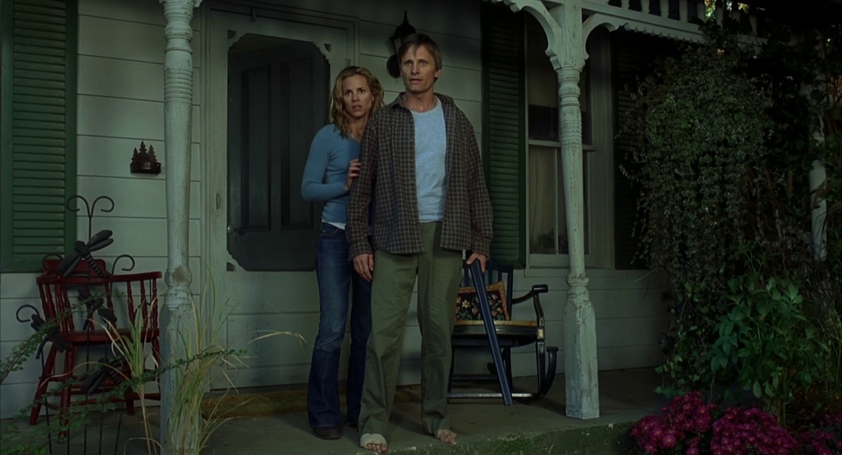 Before Peter Jackson’s The Lord of the Rings (2001-03) trilogy elevated him to reluctant stardom, Viggo Mortensen had hovered around the margins of Hollywood for decades. His career had been a patchwork of overlooked supporting roles in works such as Sean Penn’s The Indian Runner (1991) and Brian De Palma’s Carlito’s Way (1993). However, A History of Violence solidifies his reputation as a versatile and compelling actor. As Tom Stall, Mortensen is the quintessential everyman whose carefully constructed suburban life collapses when his illicit history is revealed. The actor navigates this transformation with unnerving precision, oscillating between nurturing domesticity and violent assailant with an unsettling grace. Initially, he imbues the character with a plain-spoken warmth and a saccharine innocence shaped by American family values. Yet, there’s an undercurrent of unease behind his eyes that subtly suggests this milquetoast existence is a masquerade for something primal lurking beneath.