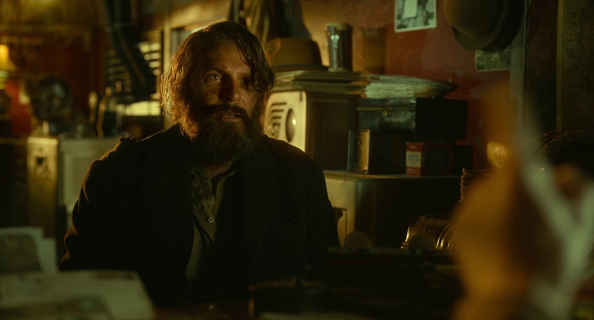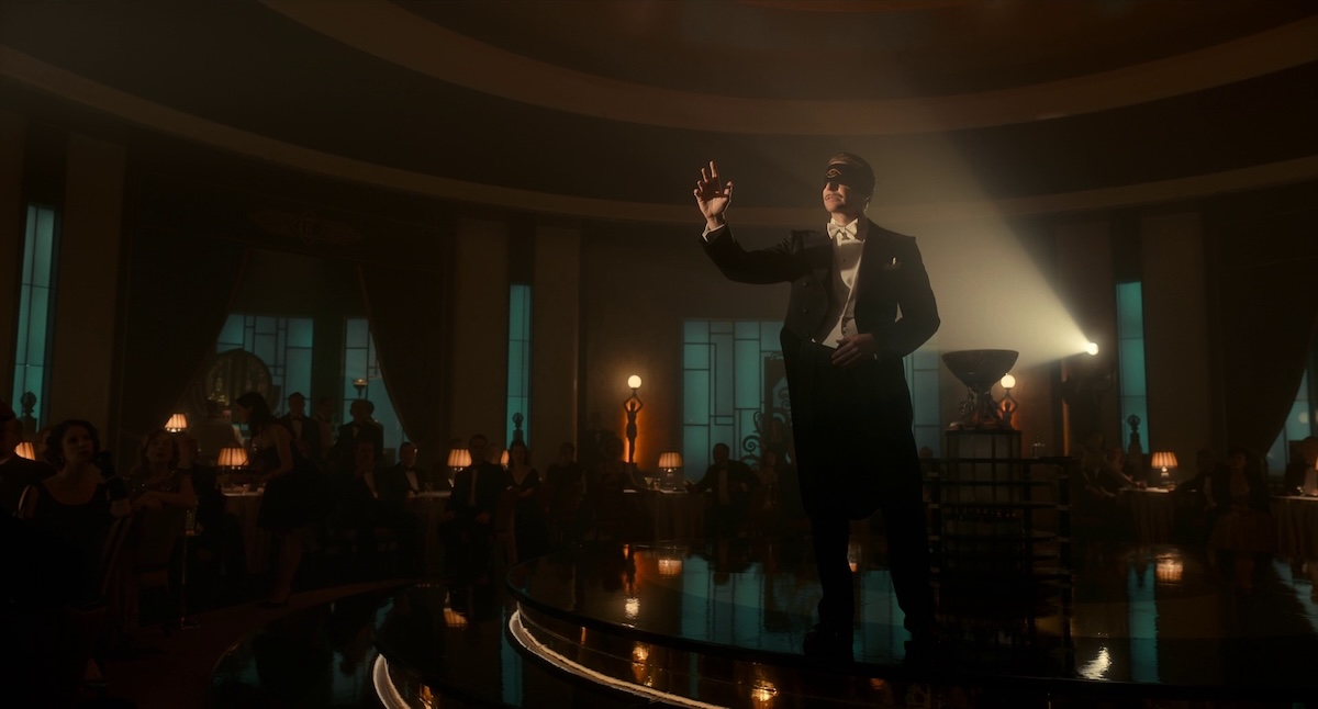 Despite large portions of Nightmare Alley unfolding in relatively dimly lit environments, the presentation delivers a remarkably sharp and richly detailed image. The transfer exhibits an impressive sense of delineation, preserving del Toro’s chiaroscuro aesthetic without sacrificing clarity. The carnival sequences are a treasure trove of textural excellence, and viewers will appreciate the image’s ability to showcase the frayed canvas tents, faded posters, and streaks of rain with tactile realism. Similarly, the wooden panels, polished surfaces, and ornate furnishings inside Lilith’s office are all rendered with clarity.