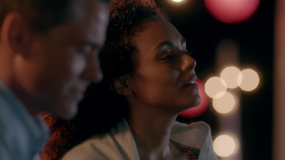 It dominates the episode’s opening nightmare, as Jamie’s dreamed of desire for Claire is transformed into terror when Randall’s face stares back at him. Ending in Jamie’s violent emergence from the dream, the scene provides, with the later sympathetic attempt by Claire to normalise their sexual relations and the revelation the long thought dead Randall is alive, an appropriate exploration of post-traumatic anxiety and fear. Randall’s snapping open of his eyes symbolically indicates the reports of his death have been greatly exaggerated, but Gabaldon’s readers would have been aware of his survival. The series keeps this news back to provide a darker, intimate subtext to a predominantly lighter and funnier episode.