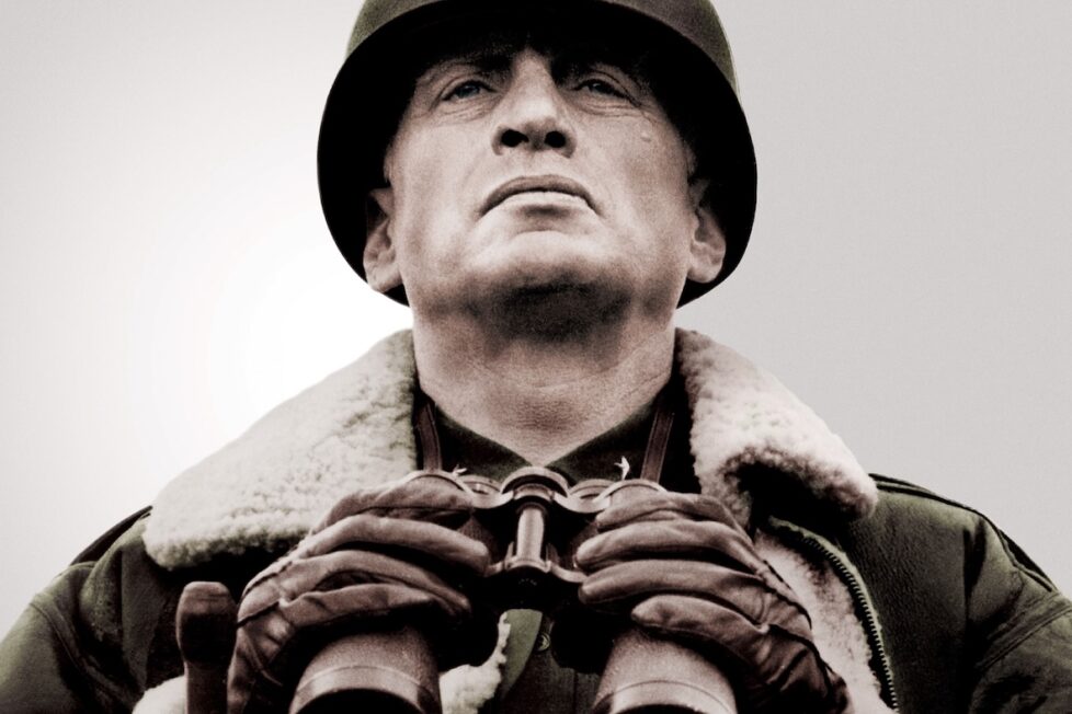 The opening moments of Franklin J. Schaffner’s Patton remain perhaps the most famous, and certainly its most commented-on: a gigantic American flag fills the screen, and hubbub fills the soundtrack. An offscreen voice calls “ten-hut!” and there’s silence; then General George S. Patton (George C. Scott) strides—no, marches—into view. He is far smaller, in Schaffner’s framing, than we might expect for such a larger-than-life figure; Old Glory, though, is absurdly big, and many writers compare the effect to Pop Art in its assertive simplicity.