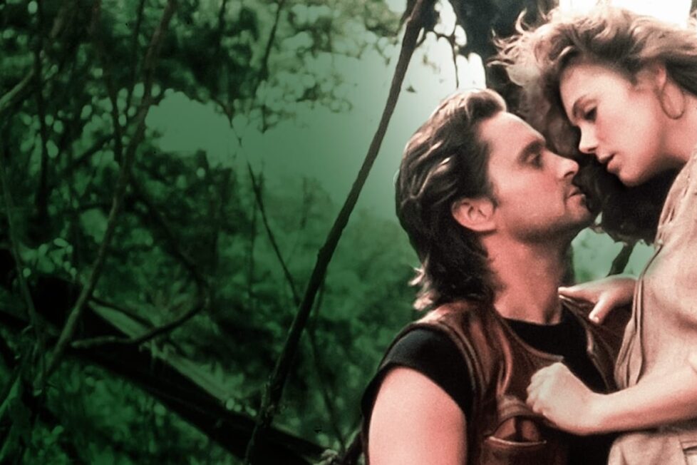 What follows is an adventure straight out of Joan’s novels. It comes complete with a handsome adventurer in an exotic bird smuggler named Jack T. Colton (Michael Douglas), a moustache-twirling villain named Zolo (Manuel Ojeda) on a treasure hunt for a priceless jewel, and the unlikely assistance of a group of romance-loving drug smugglers.