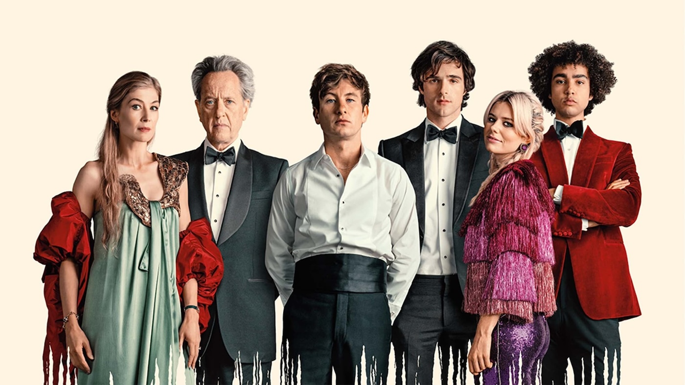 starring: Barry Keoghan, Jacob Elordi, Rosamund Pike, Richard E. Grant, Alison Oliver, Archie Madekwe & Carey Mulligan.