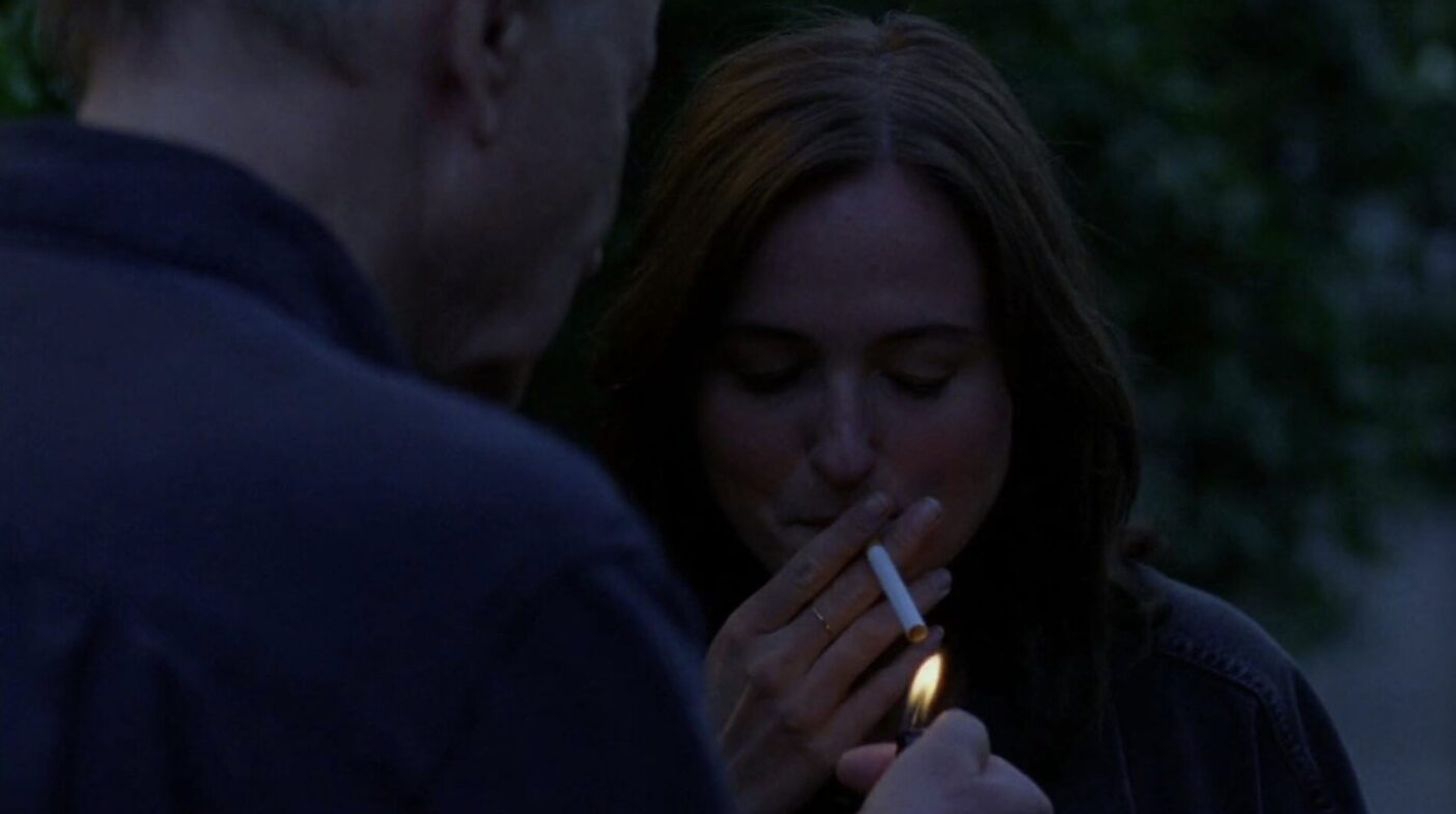 Later, in one of the film’s most touching scenes, Nora and Gustav step outside for a cigarette. Against the deep blues of the evening and the glow of streetlights, they realise that nothing needs to be said. Nora offers her father the smile of a fellow troublemaker; two smokers sharing a vice that the world finds disgusting. A smoke break is an attempt to collect one’s thoughts—a respite where solitude is as essential as the nicotine. Throughout the film, Gustav tells his daughters they are like him; here, we see he might be right.