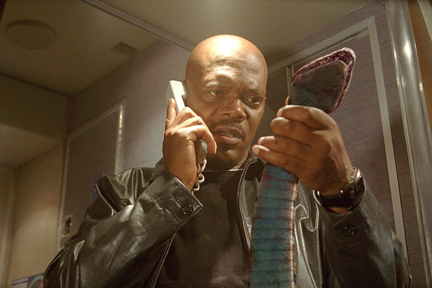 Matching the outlandish premise and equally absurd execution is Samuel L. Jackson’s characteristically intense performance. As federal agent Neville Flynn, he’s a hardened lawman tasked with protecting a witness on a flight overrun with venomous snakes. It’s a character that could’ve easily devolved into a broad caricature in the hands of a less capable performer.