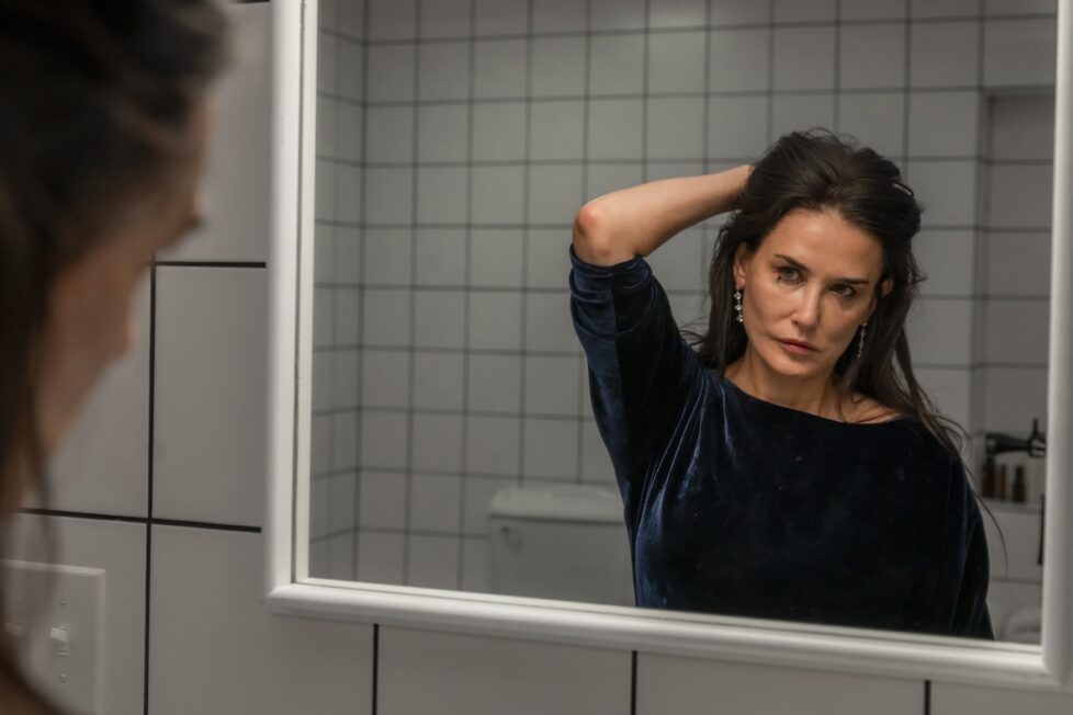 Who’s ageing? Demi Moore, at 61, hasn’t had a great role since at least the late-1990s. Here, she returns to the limelight as a fading star (not unlike herself), humbly named Elisabeth Sparkle, an Academy Award-winner who was fired from an aerobics show by her flagrantly misogynistic boss (Dennis Quaid), and on her birthday no less. After a car crash, she secretly receives a flash drive with information about the so-called “Substance”, which promises its user a younger, better self. She throws it down the garbage can, and then, the film lets slip the first sign of its weakness: she doesn’t think to get therapy or has the “good instinct” to pursue transcendental meditation (now so rampant in entertainment circles), or even tries to get a new job before she reconsiders “the Substance”, which she only just threw away.
