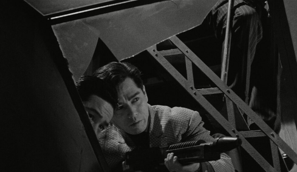 Instead of what could have become a tiresome concoction of clichés, Suzuki managed to give us something that still seems fresh and surprising. It is rewarding enough if approached as a straightforward noir with its deep structural contrasts, shootouts in the shadows, and plenty of suits and brimmed hats. All captured beautifully by the monochrome cinematography of Wataro Nakao, whom I assume was a studio technician as I can find no other credits for them.
