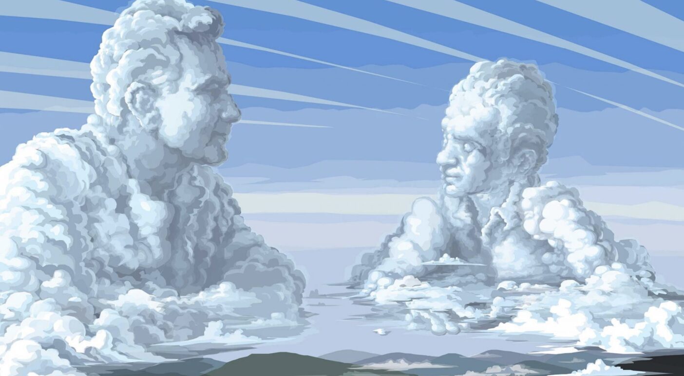 Some proselytise on the inevitable downward trajectory of humanity; others say we never stop learning and growing. There’s no consensus; rather, it’s as if our dreamer is receiving prospectuses from a dozen different schools of thought. To reflect this range of ideas, the animation is ever-changing.