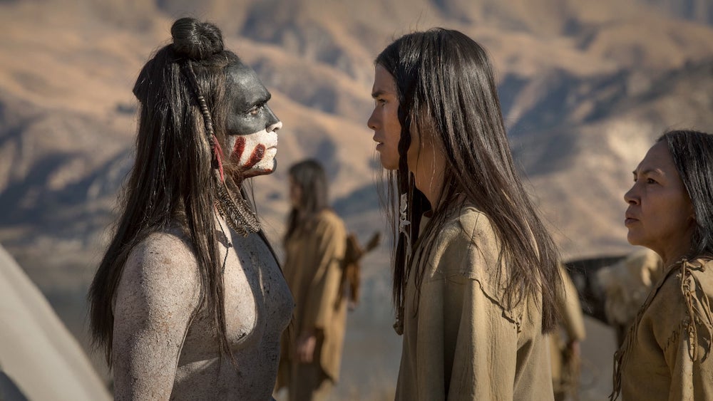 The writers even found a way for those scalps carved with maze symbols to return, which seemed to be an abandoned idea from season 1. I have doubts this was their intended answer from the start, but kudos for coming up with something that fits and makes sense. Ironic, too, that a culture the white colonists dismissed and belittled held the key to understanding so much.